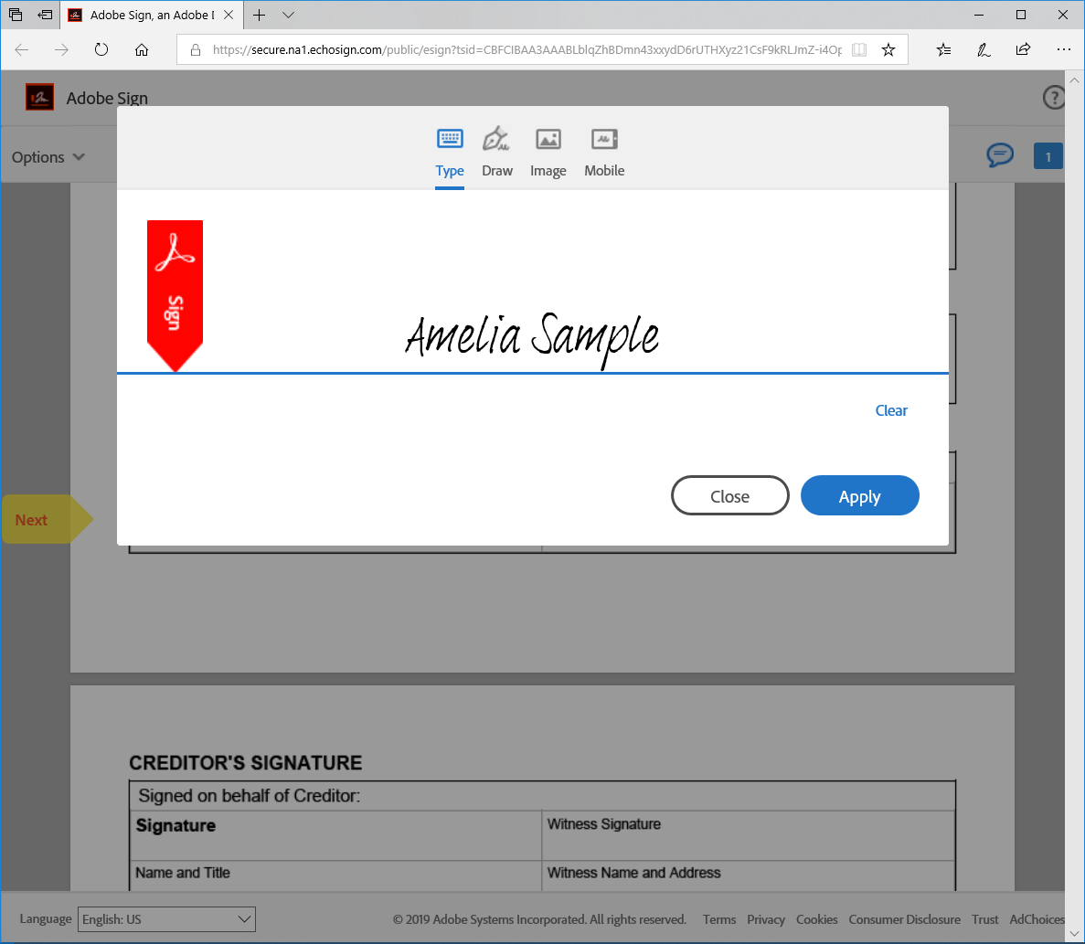 The Adobe Sign service allows clients to sign documents in seconds as well as invite other people and witnesses to fill in and sign.