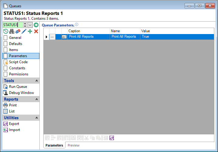 | Visible | Will be ticked if the Parameter is to be shown when the Queue is run |