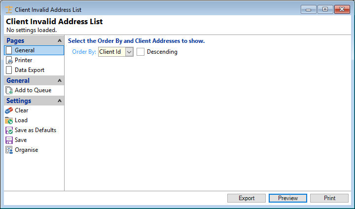 Select the order in which the report is to appear, by Client Id or Postal Id.