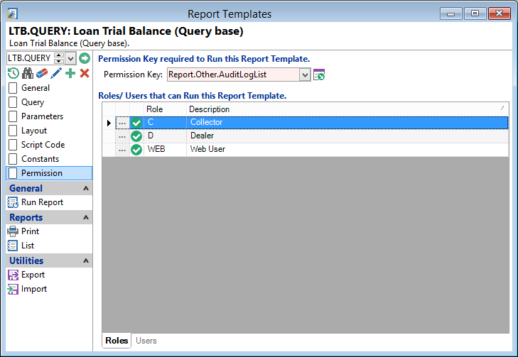 Select a permission key to use if you want to allow Users to run this Report Template.